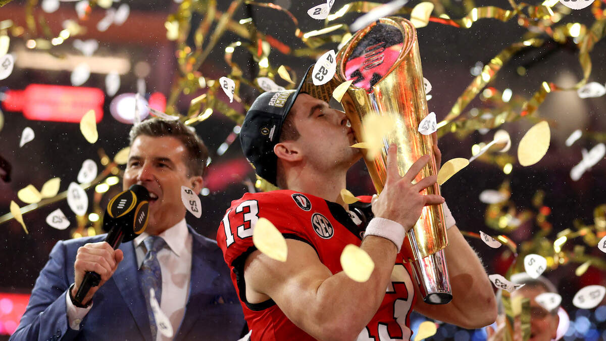 Georgia is currently listed at +375 odds, ahead of Alabama (+550) and Ohio State (+650), despite losing quarterback Stetson Bennett, who once again put together a stellar performance in his final collegiate game during a 65-7 rout of TCU.